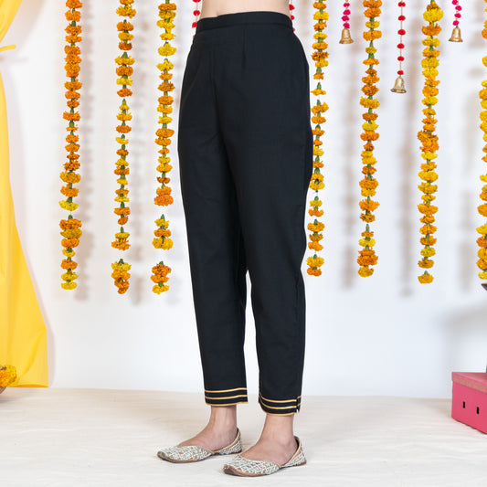 Black Cigarette Pant With Gotta Embroidery