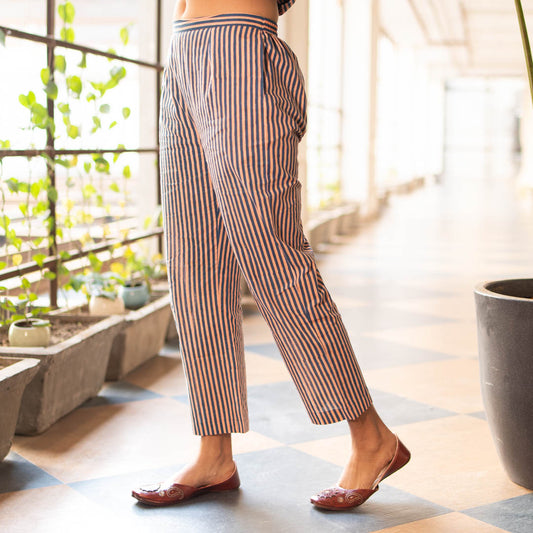 Blue Striped Straight Fit Trousers