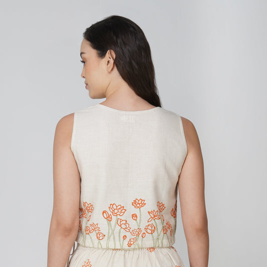 Women Cotton Hand Block Printed Yoga Crop Top -Ananda