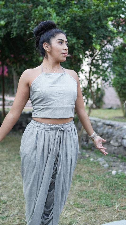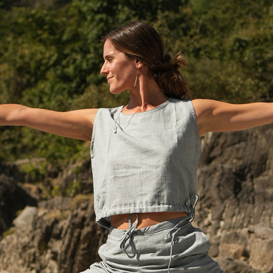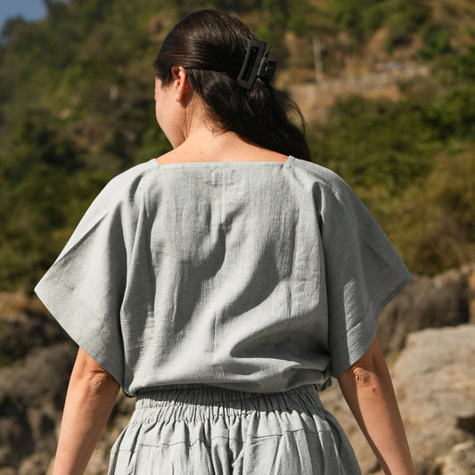 Women Zero Waste Cotton Yoga Top Grey -Shwet