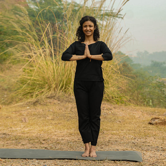 Men Yoga Pants and Yoga Top Set Black -Prithvi