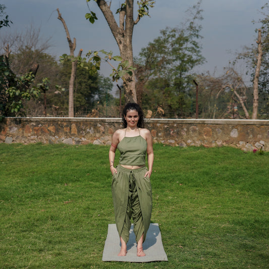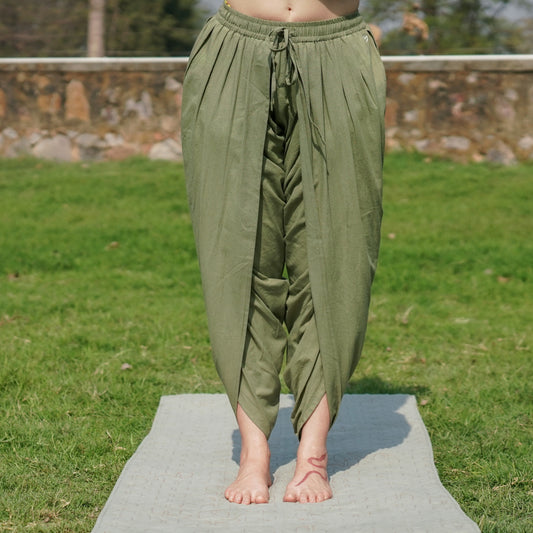 Women Cotton Dhoti Yoga Pants Green -Surya
