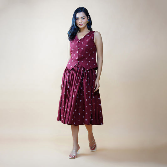 Plum Waist Coat with Flared Skirt (Set of 2)
