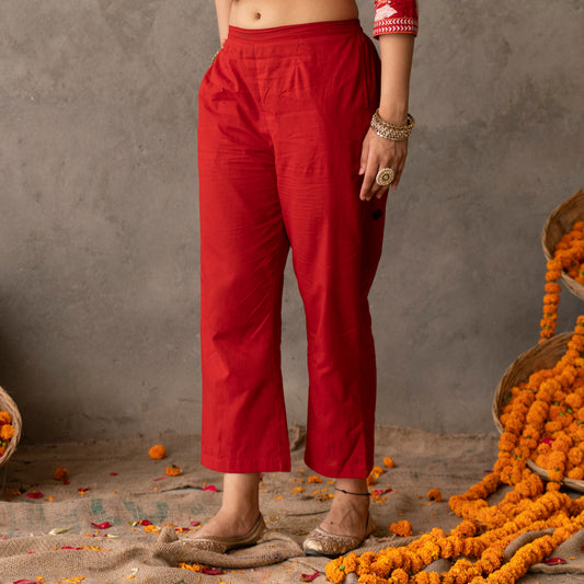Solid red cotton straight pants