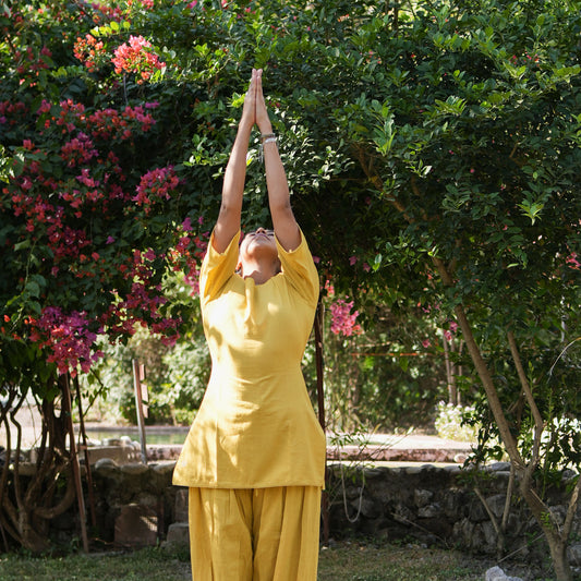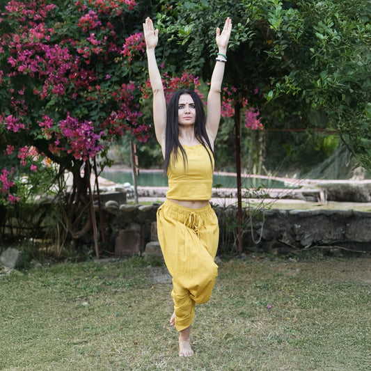 Women Cotton Yoga Pants and Yoga Top Yellow -Tara