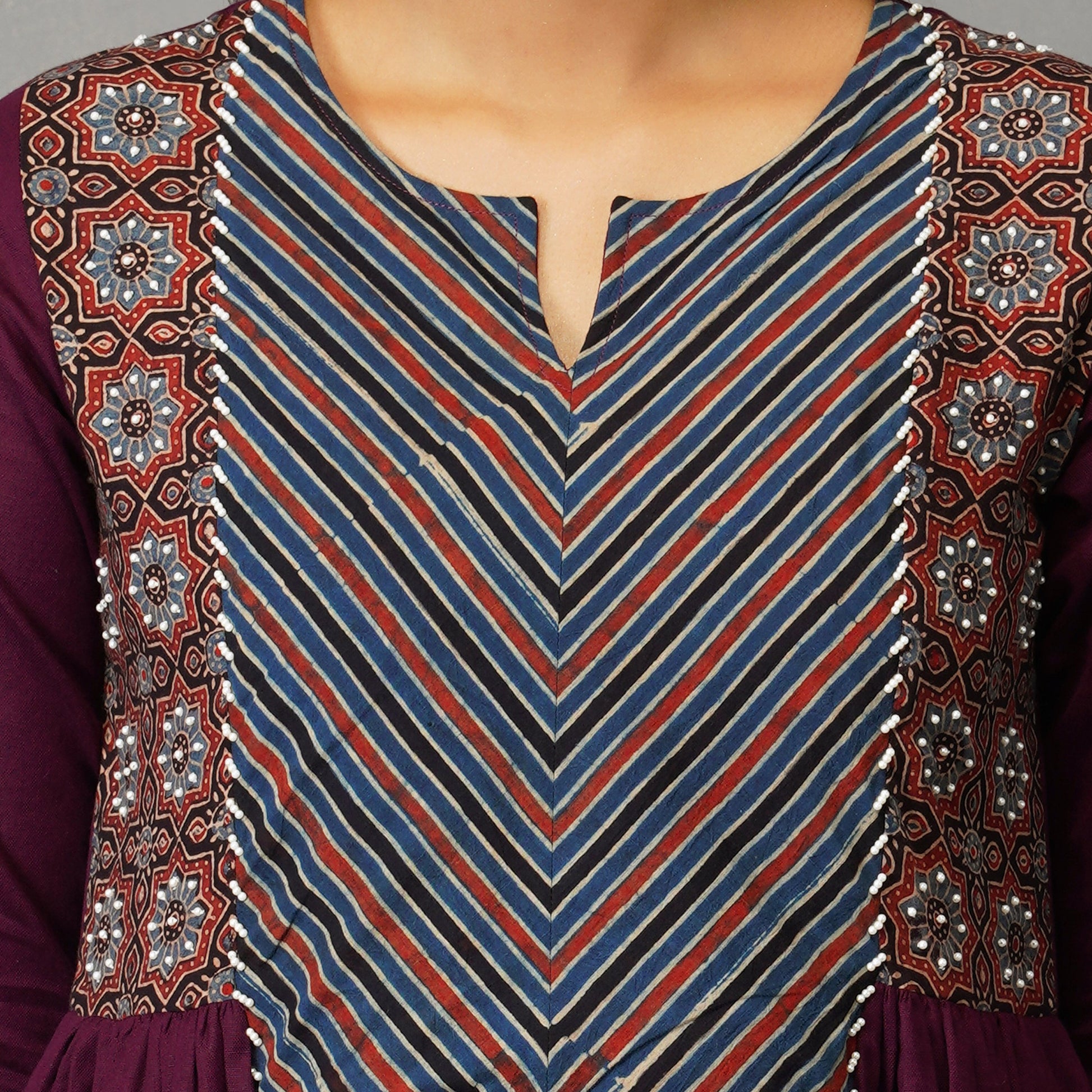Mulberry (Purple) Side Panel Kurta with Handblock Ajrak Set with pants (set of 2)