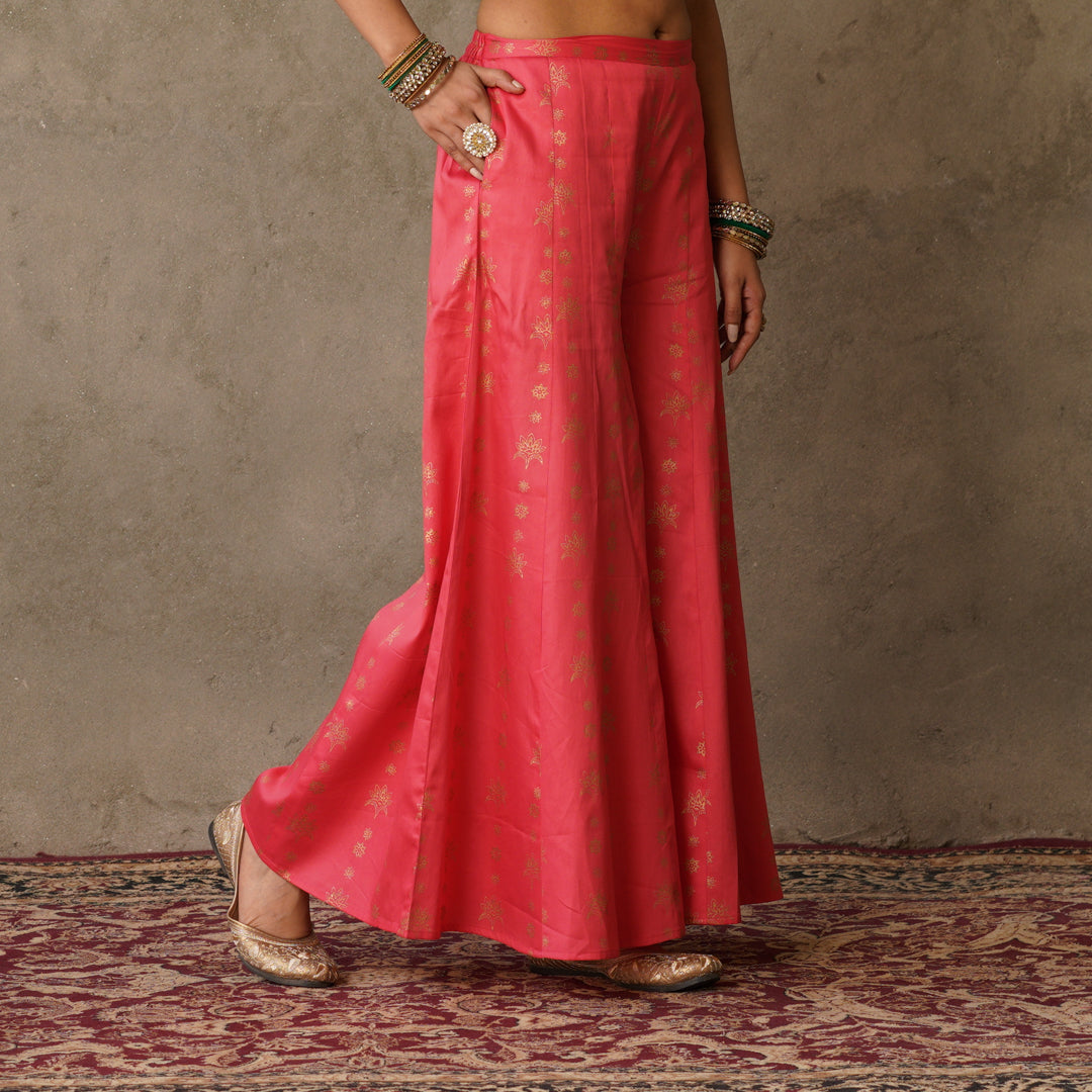 Coral sleeveless Kurta with Hand Embroidery Details with Block Printed Sharara with Chanderi Dupatta (Set of 3)