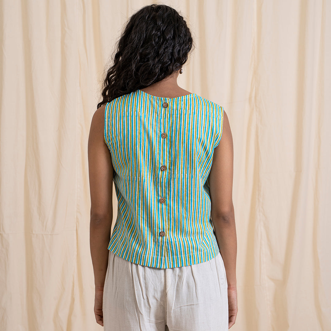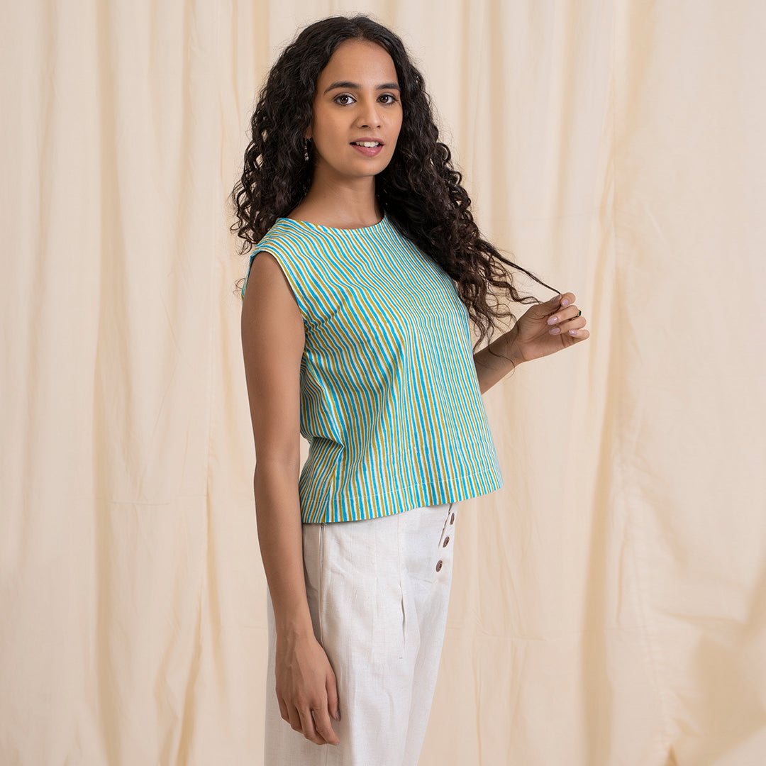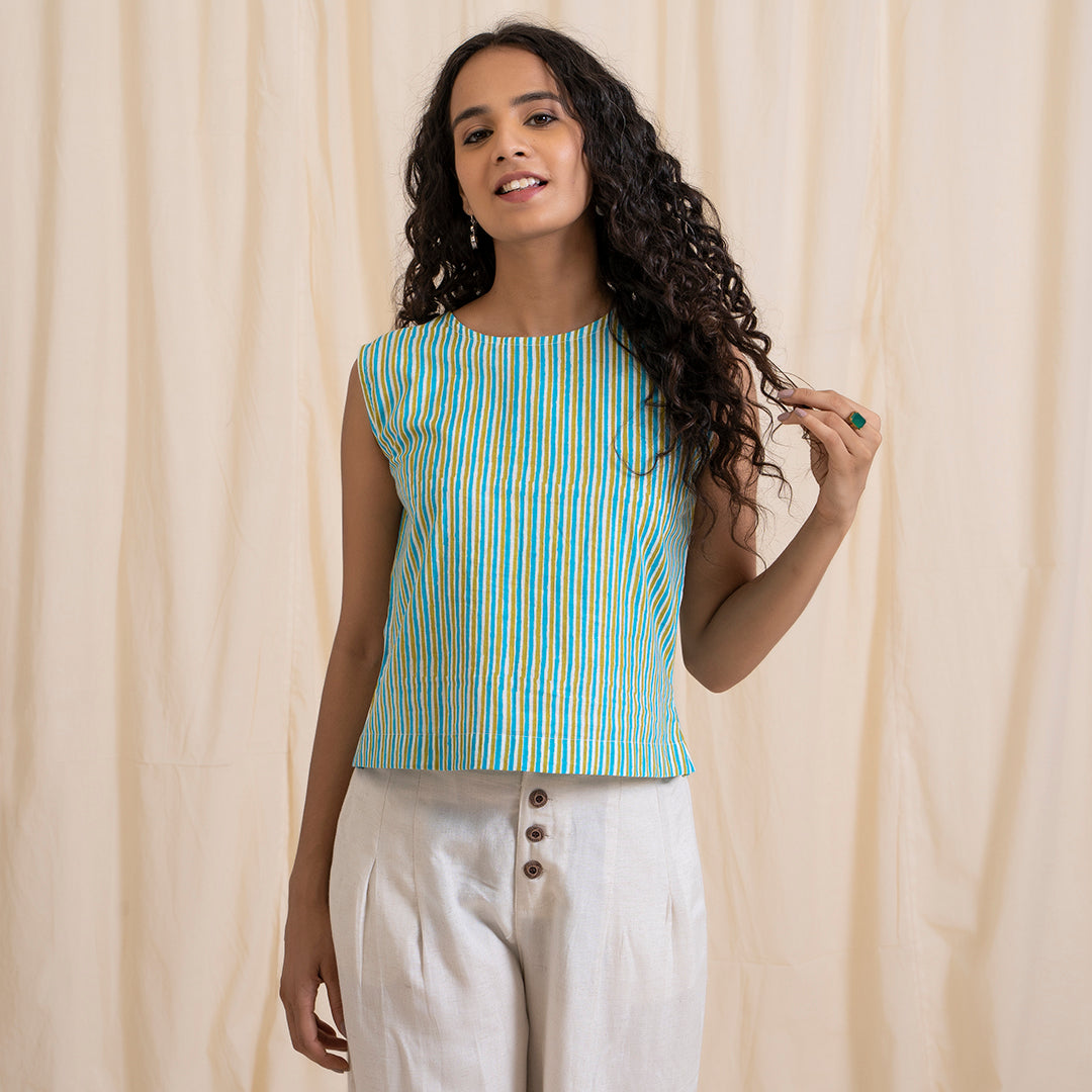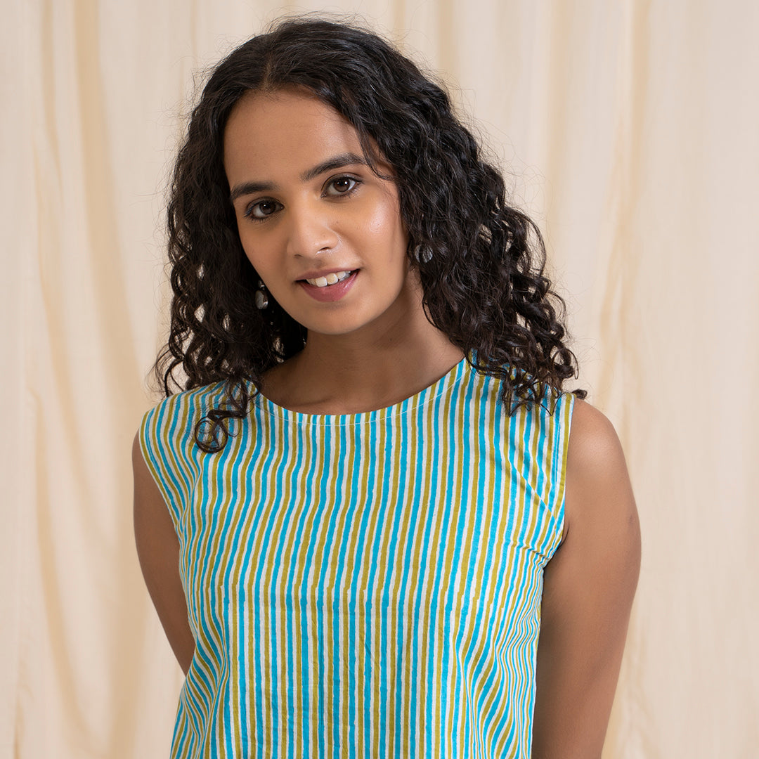 Made from 100% cotton, this striking pop of colour stripped print crop top is a must have in your wardrobe. The unusual combination of green and grey works its magic. Featuring an open back, this top is your style statement for the season. Pair this crop top with your favourite pair of denims or white pants and wedges for a look that’s effortless yet striking.