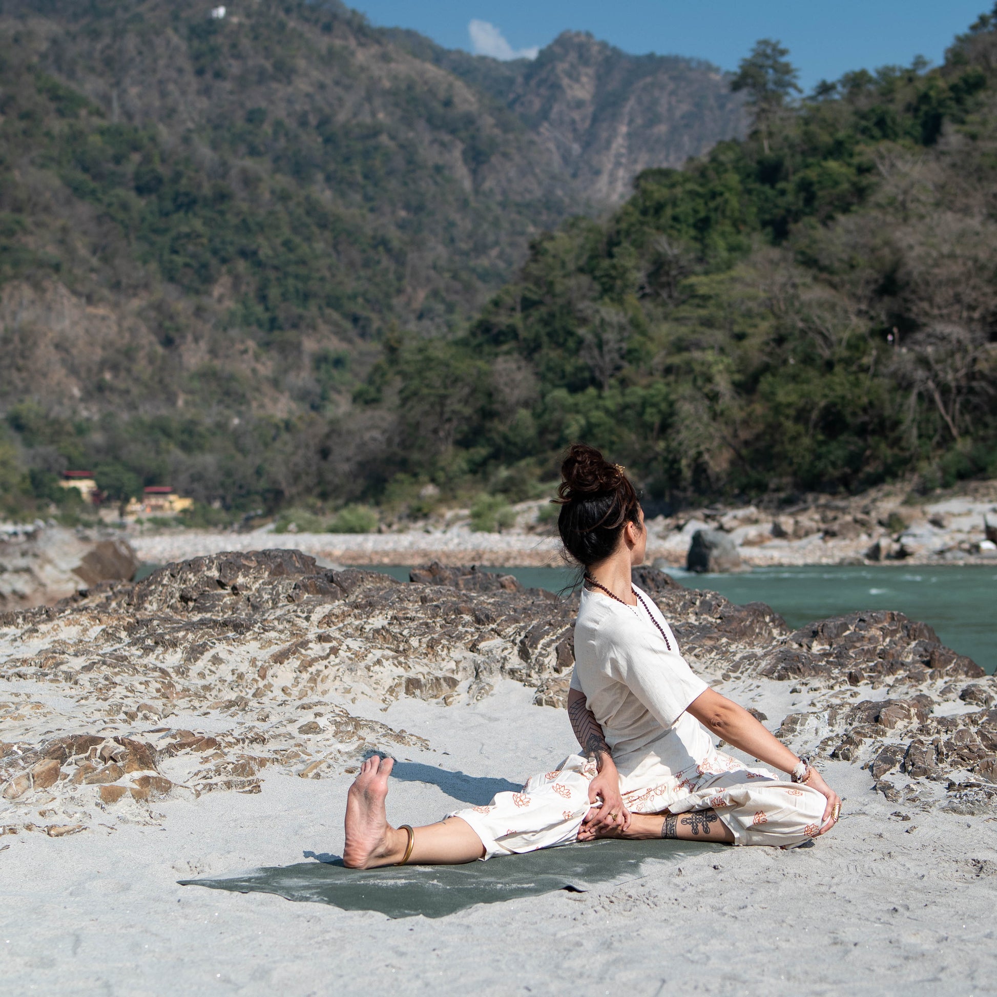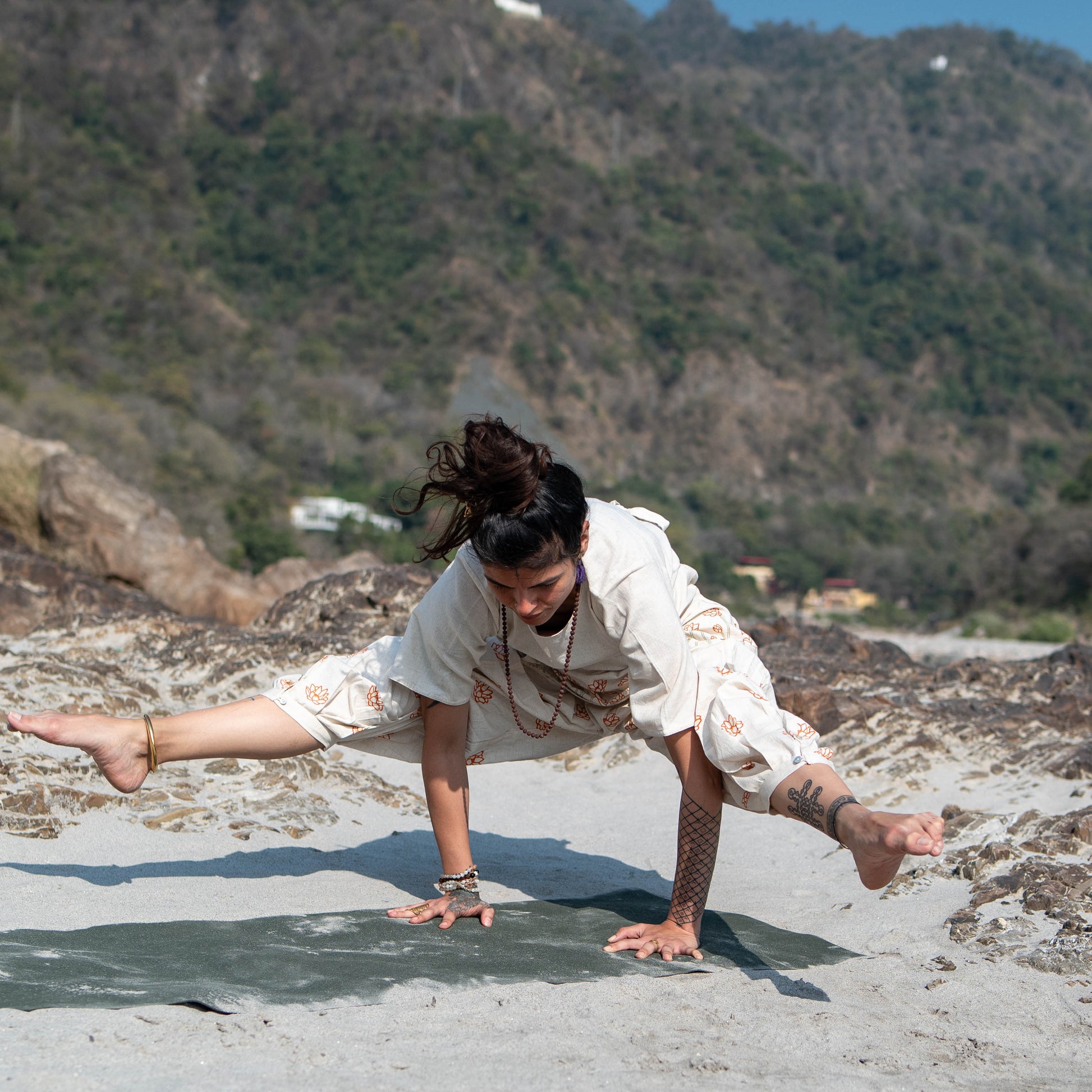 Our tops and pants for women, come with fastenings like drawstrings, wooden beads, buttons and tie ups, that prevent them from riding up during inversions or challenging poses, giving you comfort during practice.