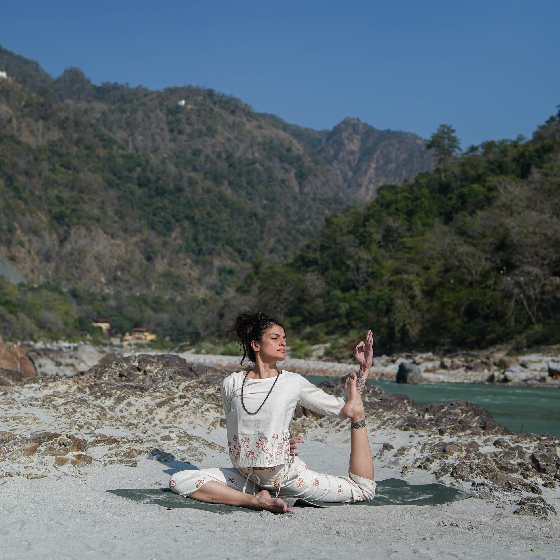 Our tops and pants for women, come with fastenings like drawstrings, wooden beads, buttons and tie ups, that prevent them from riding up during inversions or challenging poses, giving you comfort during practice.