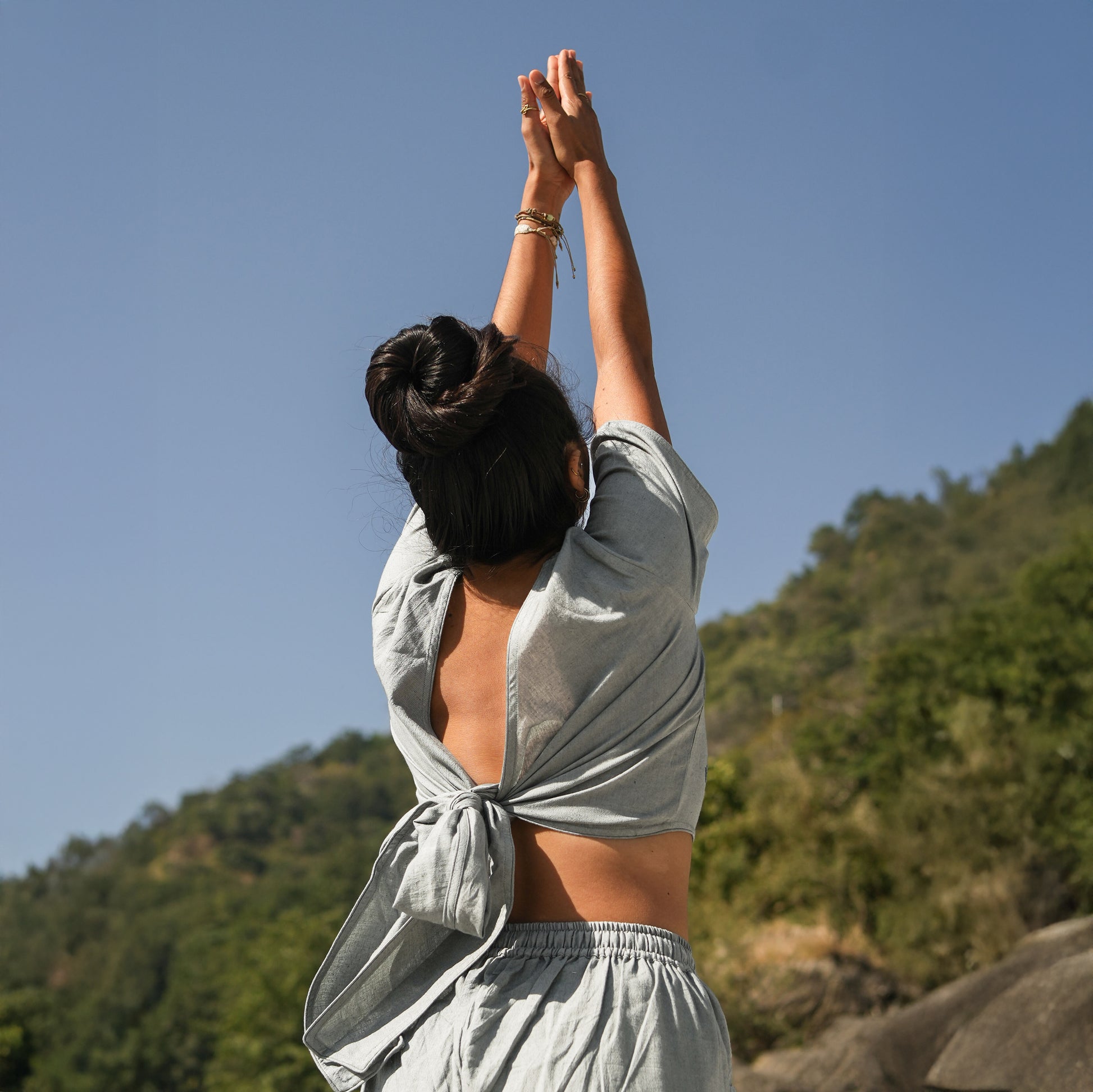 Our tops and pants for women, come with fastenings like drawstrings, wooden beads, buttons and tie ups, that prevent them from riding up during inversions or challenging poses, giving you comfort during practice.