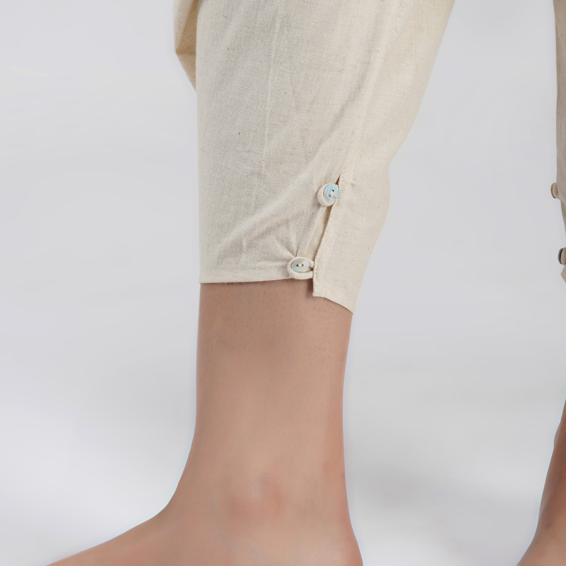 Our tops and pants for women, come with fastenings like drawstrings, wooden beads, buttons and tie ups, that prevent them from riding up during inversions or challenging poses, giving you comfort during practice.