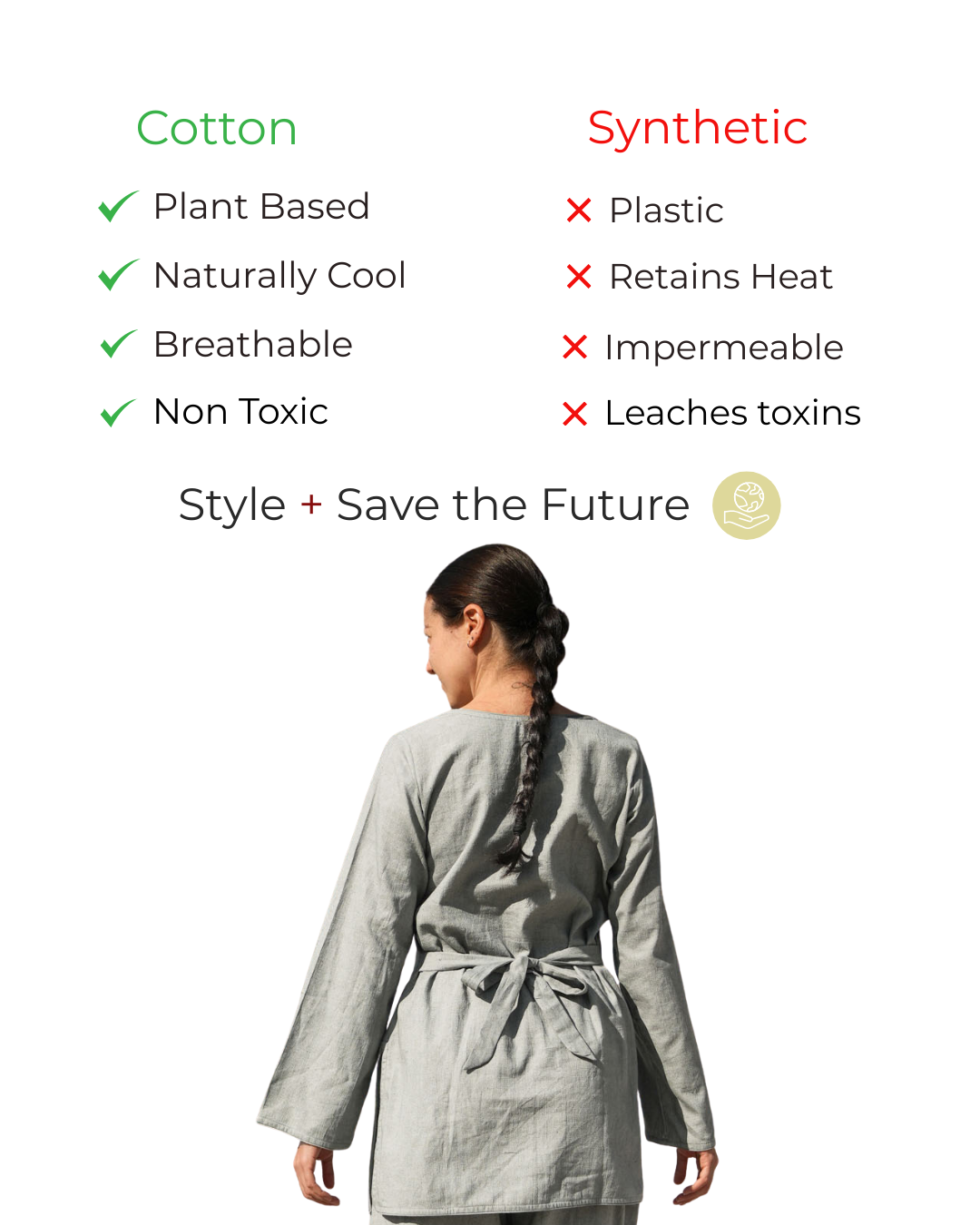 - The natural materials help regulate body temperature and breathability, while allowing full freedom of movement.