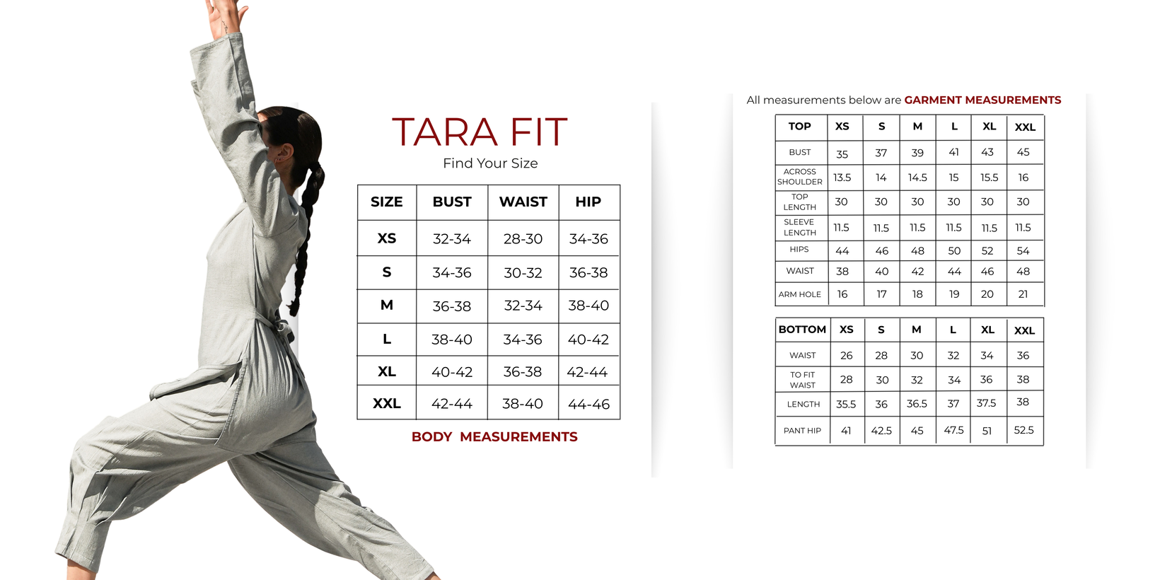 While you practice yoga the garment will need to move with you. When in doubt we encourage you to buy a size bigger for ease of movement as you do different asanas.