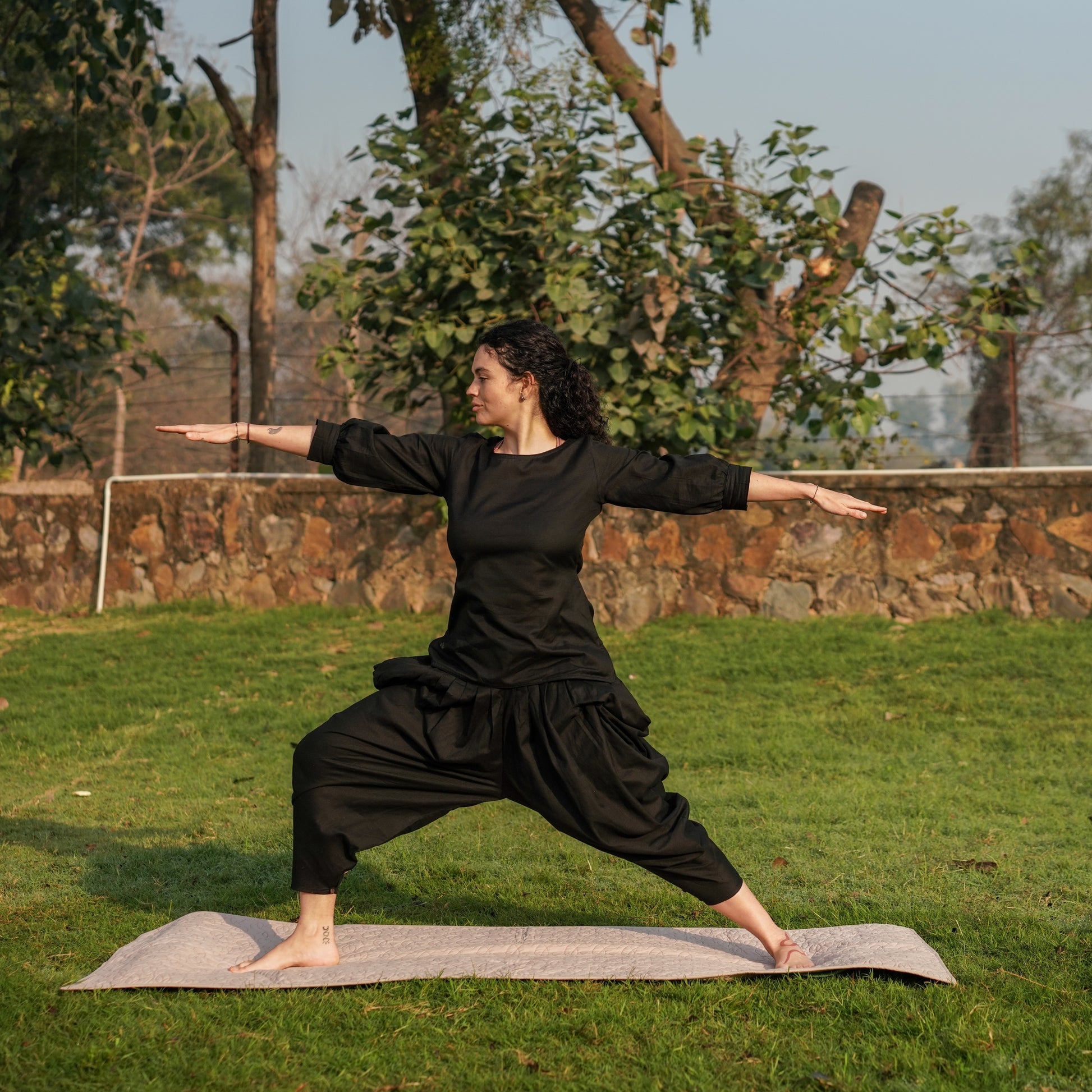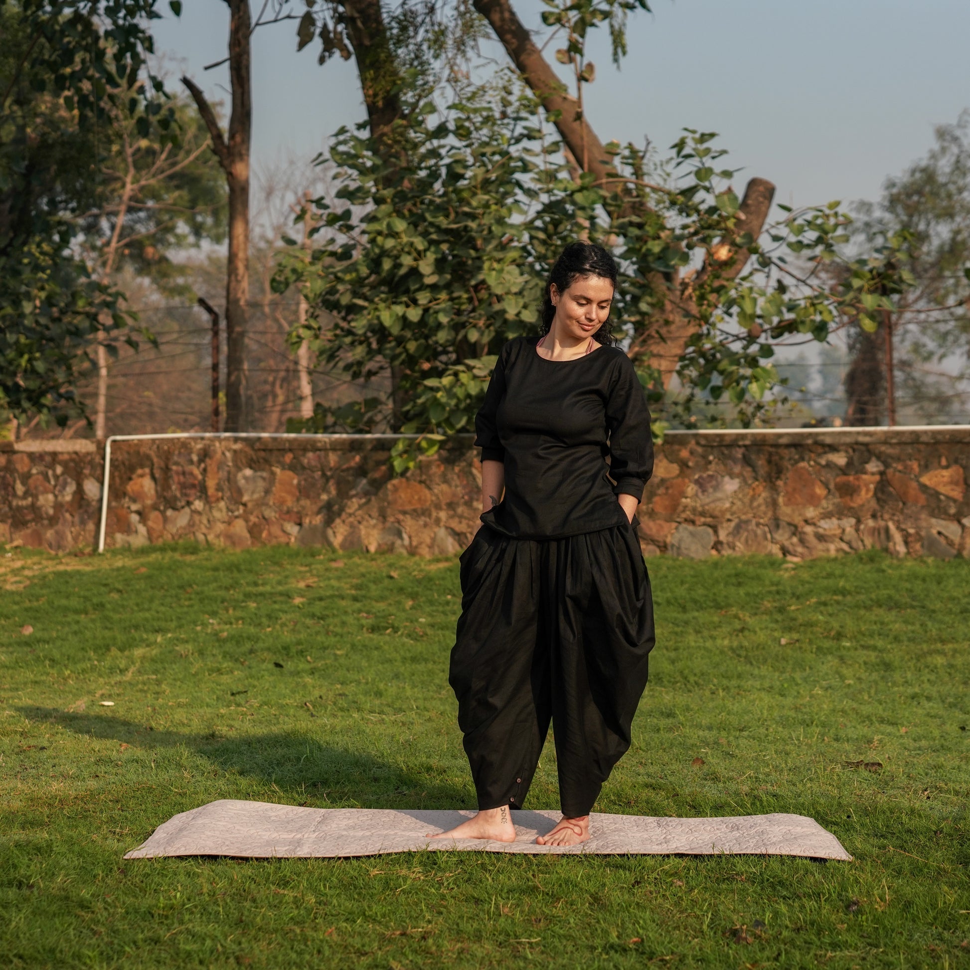 Our tops and pants for women, come with fastenings like drawstrings, wooden beads, buttons and tie ups, that prevent them from riding up during inversions or challenging poses, giving you comfort during practice.
