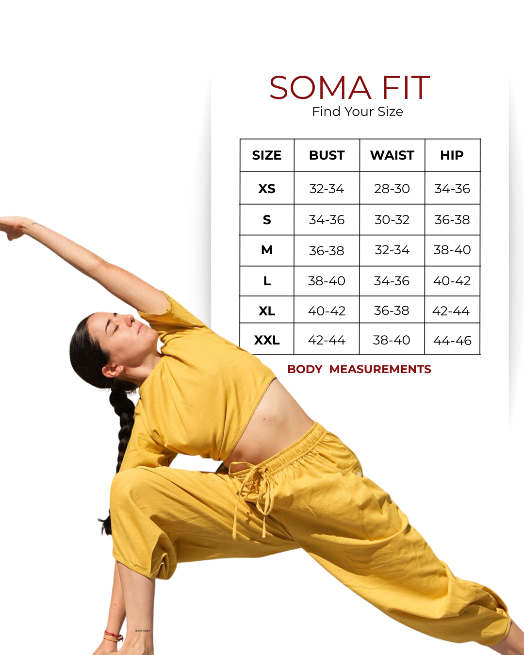 Made from unbleached 100% cotton - our Soma Baggy Fit pants are designed to allow your body to flow and move with ease, while ensuring comfort and elegance throughout.