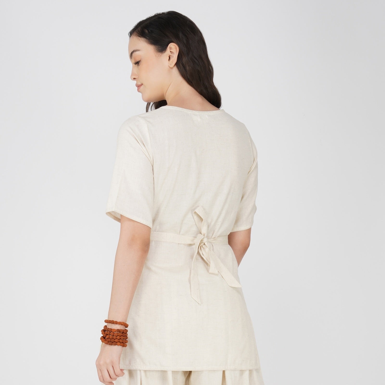 Our tops and pants for women, come with fastenings like drawstrings, wooden beads, buttons and tie ups, that prevent them from riding up during inversions or challenging poses, giving you comfort during practice.