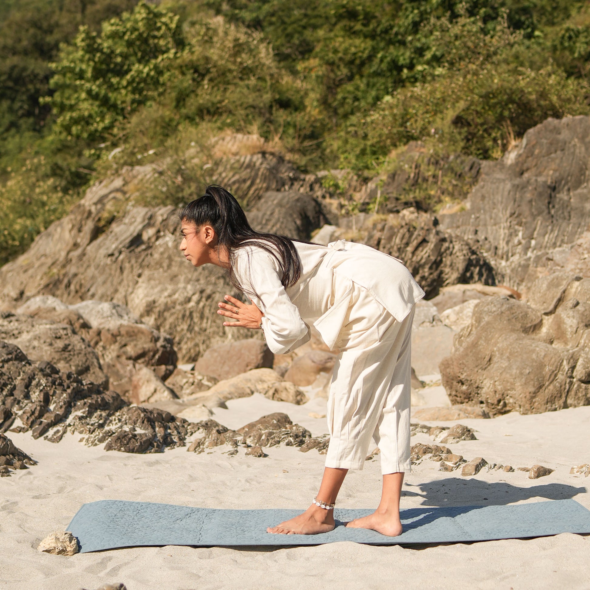 Our tops and pants for women, come with fastenings like drawstrings, wooden beads, buttons and tie ups, that prevent them from riding up during inversions or challenging poses, giving you comfort during practice.